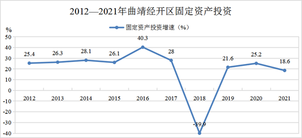 党的十八大以来,曲靖经开区固定资产投资保持较快增长,投资意愿不断增强、投资环境不断改善,项目建设成果丰硕。十年间,曲靖经开区固定资产投资年均增长17.4%;投资重点不断突出,第二产业年均增长38.5%,第三产业年均增长4.9%;投资质量不断提高,投资结构不断优化,三次产业投资结构由2012年1.6:45.5:52.9转变为2021年0:63.2:36.8。